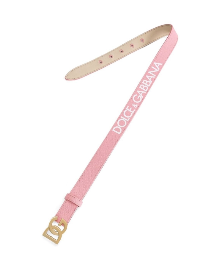 DOLCE & GABBANA CINTURA CANVAS STAMPATO ROSA/BIANCO