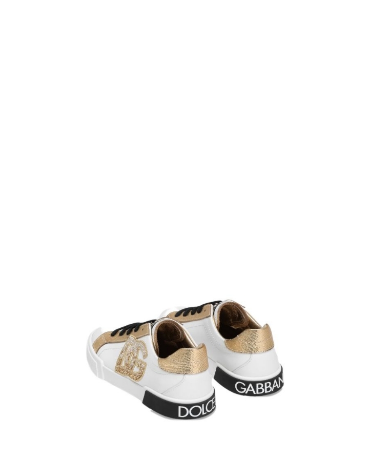DOLCE & GABBANA SNEAKER BASSA ALLACCIATA BIANCO/ORO