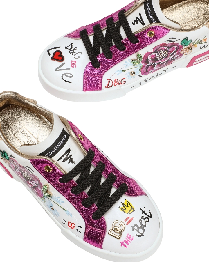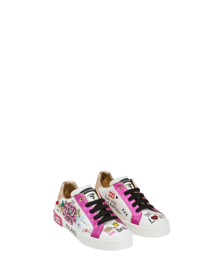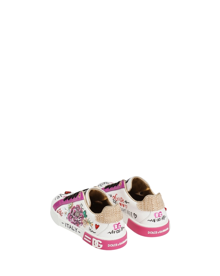 DOLCE & GABBANA SNEAKER BASSA ALLACCIATA SCRITTE FDO. BIANCO