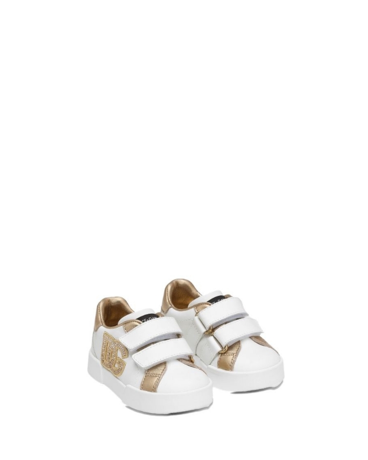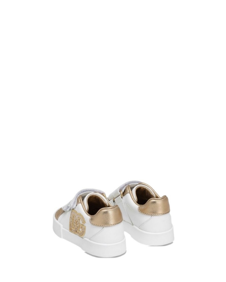 DOLCE & GABBANA SNEAKER BASSA BIANCO/ORO