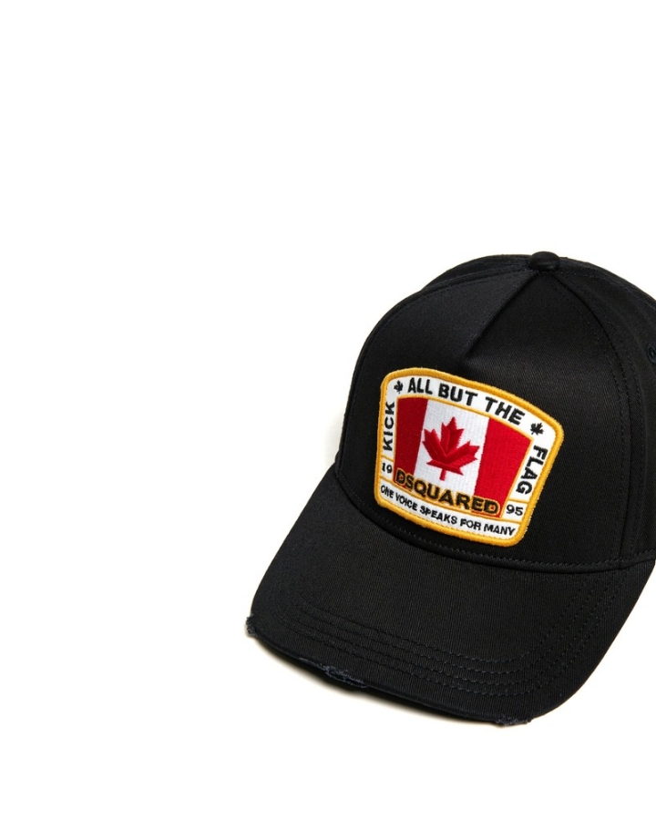 Cappellino da baseball in gabardine con patch di ispirazione canadese, un omaggio alle radici del mondo Dsquared2. Le abrasioni sulla visiera donano un effetto vissuto, perfetto per completare al meglio i look casual di tutti i giorni.