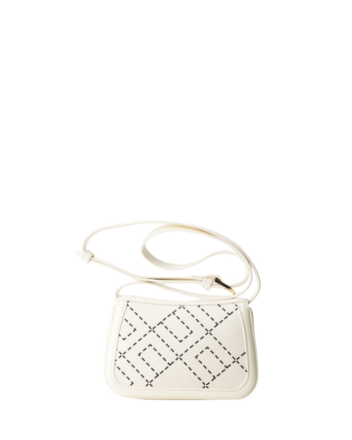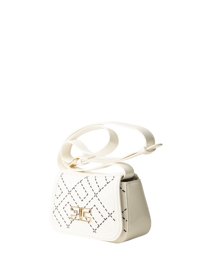 ELISABETTA FRANCHI BORSA IN CREPE STAMPA LOGO MILK/NERO