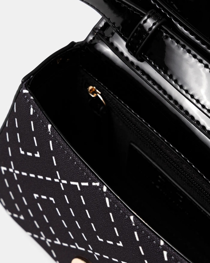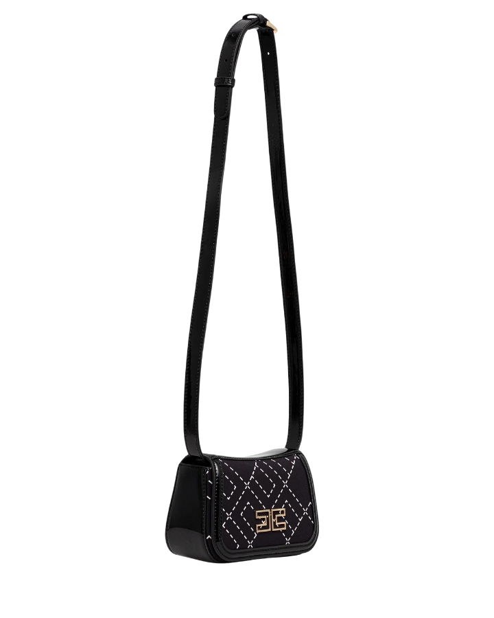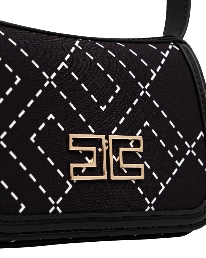 ELISABETTA FRANCHI BORSA IN CREPE STAMPA LOGO NERO/BURRO